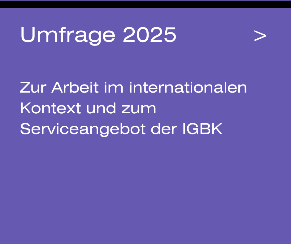 Wir wollen ein besseres Bild davon bekommen, welche Erfahrungen Künstler*innen im internationalen Kontext machen. Ihr Feedback hilft uns, unsere Serviceangebote kontinuierlich zu verbessern. Wir freuen uns über Ihre Beteiligung.
